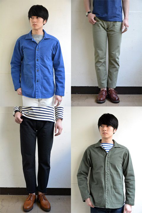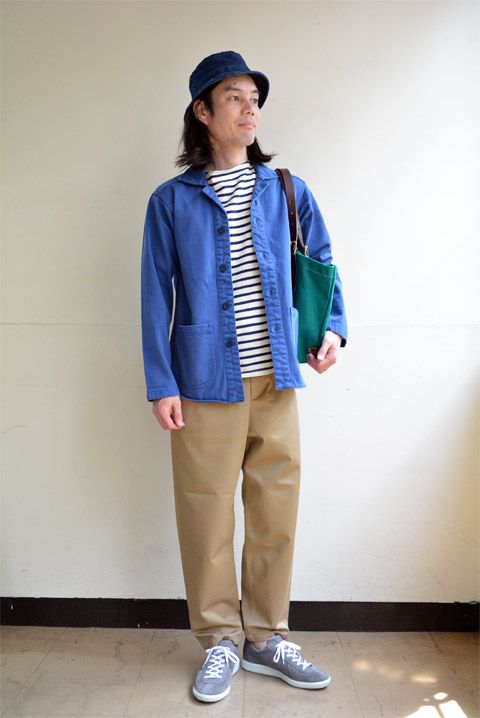 ツイル素材に雰囲気のいいウォッシュを掛けて仕上げたワークジャケット。ブルーは特にフレンチな雰囲気があるので、セントジェームスのボーダーバスクシャツなどに合わせて着るのがいい。この普遍性の高いアイテムがモアセールで非常にお求め易くなってる今がまさにおすすめです!