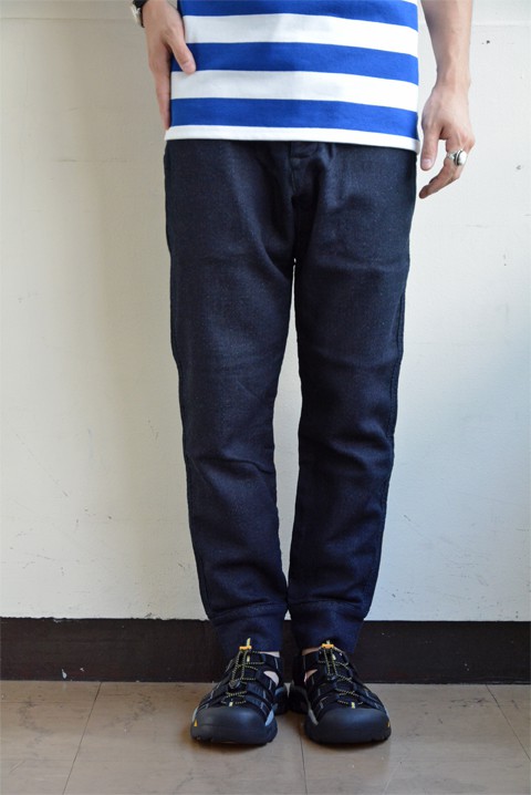 素材感、穿き心地の良さでリラックス。腰回りにはややゆとりを設けて、すっきりと細いテーパードシルエット。とてもスタイリッシュでございます。