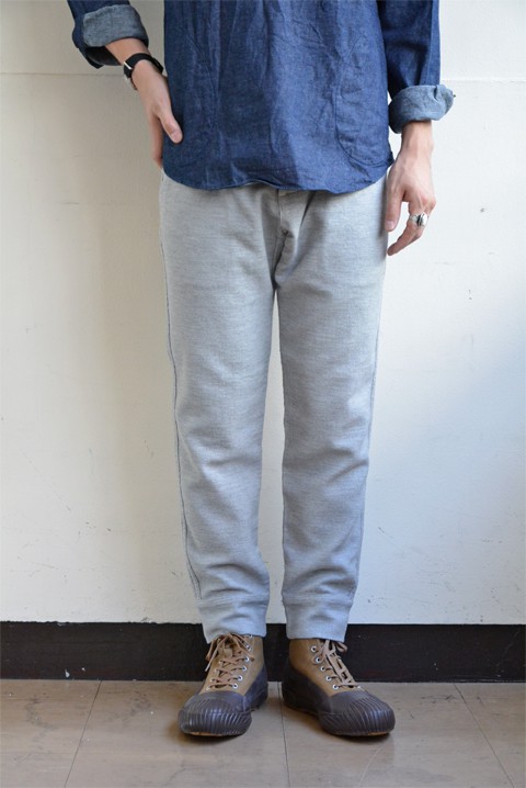 スウェットとは言いましたが、正確にはこちらは布帛(織物)の生地を使用しており、スウェットパンツ特有のヒザの伸びなどが出ないよう工夫がされております。でもしっかり楽チン。パッと見は本当にスウェットみたいです。FOBオリジナルのとても考えられた生地なのでございます。