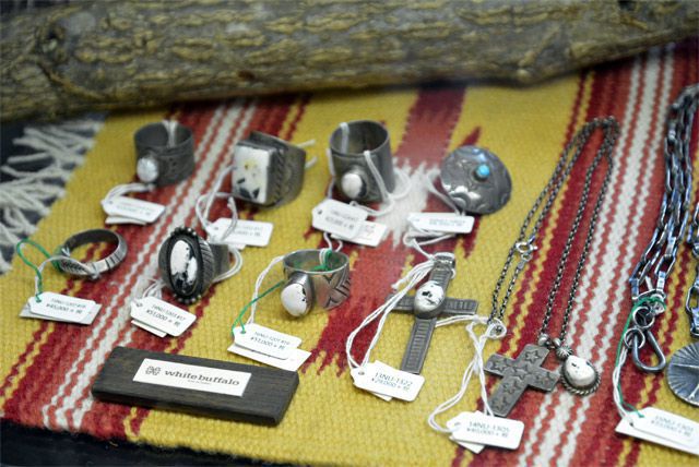 ナバホの末裔によって制作される「white buffalo(ホワイトバッファロー)」は、ブランド名でもありますが、この白い天然石のことでもあります。所謂ターコイズよりも圧倒的に採れる量が少ない事から、非常に貴重な石として崇められたモノ。それを中心とし、贅沢に使ったコレクションとなっている。