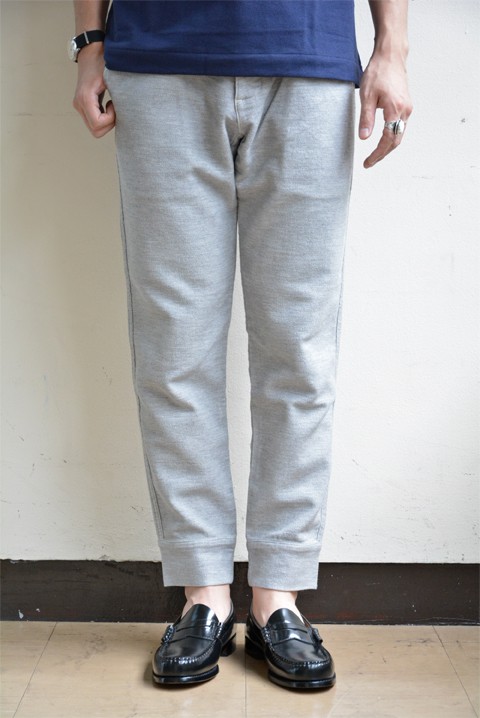 スウェットライクなパンツと合わせて夏のスポーティなスタイルに。FOBオリジナルの素材を使用したこちらはスウェットのように快適ながら膝の伸びなどが出ないよう工夫されたもの。