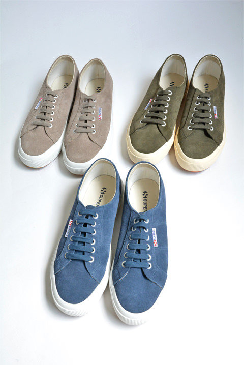 ●SUPERGA(スペルガ) スウェードスニーカー カラー:サンド、ミリタリーグリーン、ブルーナイトシャドウ サイズ:40、41、42、43 ¥10,800-