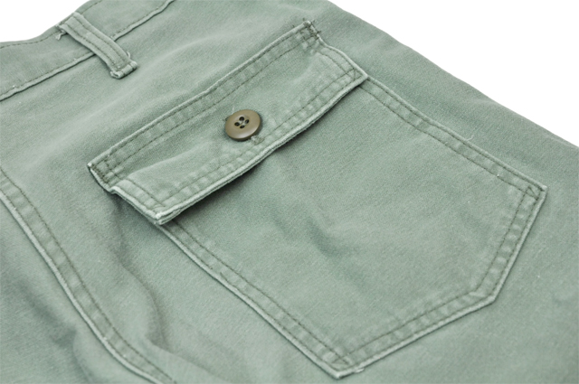 ディティールの特徴としてはフロントにあるパッチポケットと、バックのフラップポケット。