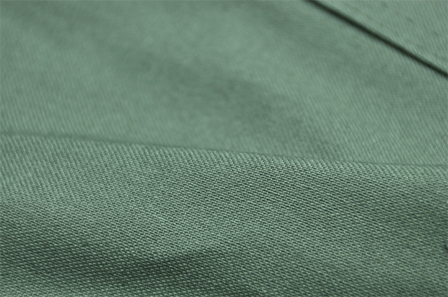 ややルーズなシルエットで、生地にはバックサテン(少しツヤのあるミリタリーによく使用される生地)を使用しているものが多いです。