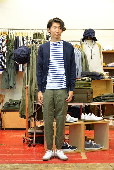 こんばんわ、大井勇人です。 やってきました。金曜日のアレです。おすすめブログです。今日もアルコール入れつつで見ていってくださいませ。 8月がスタートし、これからどんどん秋物の入荷が続きます。ですので新着商品はもちろん再入荷商品も。まとめておすすめ商品をご紹介します。 秋物一発目は【ミリタリー】です。 ミリタリーなスタイル。オリーブやカーキがこの春夏は気分なもので秋冬もそれは継続です。 中でもオリーブの軍モノパンツがおすすめです。 blog183 blog184左から ●ベイカーパンツ USED(古着)60~80年代  ¥8,532 ●アメリカ軍 MILITARY US.ARMY・M-65 フィールドパンツ USED(古着)  サイズ:US.Small/Regular  ¥9,720フランス軍 F2パンツ デッドストック  サイズ:76C,84C  ¥7,020 コーディネイトとしましては、LACOSTE(ラコステ)のポロシャツやSaint James(セントジェームス) のピリアック、ウエッソン半袖が今はおすすめ。季節が進めば、その上にカーディガンやジャケット。また、Saint James(セントジェームス)のウエッソンやボタンダウンシャツなどがおすすめです。 イメージとしましてはこんな感じ。加茂さんに着てもらいました。 DSC_7284●カーディガン INVERTERE(インバーティア)  サイズ:36  ¥23,760 ●ボーダーT Saint James(セントジェームス)   サイズ:T3  ¥6,804 ●パンツ フランス軍 F2パンツ  サイズ:76C  ¥7,020 ●シューズ GERMAN TRAINER(ジャーマントレーナー)  サイズ:40  ¥18,144 身長170cm 体重50kg 足約24.5cm 着用のカーディガンはシーアイランドコットンを使用したINVERTERE(インバーティア)のもの。 シーアイランドコットンは希少価値の高い高級素材で、カシミヤのような柔らかい肌触りに絹のような上品な光沢感が特徴的。まさにジェントルマンな方にピッタリの一着かと。 同じ素材でクルーネックのニットもありますよ! blog181INVERTERE(インバーティア) sea island cotton(シーアイランドコットン) クルーネックニット ネイビー  サイズ:36,38,40  ¥19,440 サイズ36着用 シューズ類が盛り上がっています。 まずは新作シューズの3型。 この秋から取り扱いスタートのGERMAN TRAINER(ジャーマントレーナー)。 GERMAN TRAINER(ジャーマントレーナー)と言えばのモデルが入荷です。汎用性の高いデザインに抜群の履き心地。軍モノトレーニングシューズですからおすすめ軍パンとどうですか? 大人な見た目が好印象です。 blog178GERMAN TRAINER(ジャーマントレーナー) レザースニーカー  サイズ:40,41,42,43,44  ¥18,144 ZABOUの定番スニーカー、SUPERGA(スペルガ)の2750。すでにブログでご紹介済みですが改めて。気に入るとそればっかりになってしまう。それは誰もが同じで、だからこそ素材違いで愛用を。やはり季節に応じたモノが◎ 食べ物もそうですが、日本には四季がある。それを存分に楽しまないと損ですよね! blog177SUPERGA(スペルガ)2750 スウェードスニーカー  カラー:サンド、ミリタリーグリーン、ブルーナイトシャドウ  サイズ:40,41,42,43  ¥10,800 ZABOUのサンダルはこれ! KEEN(キーン)でございます。 創業モデルのNewportの進化版、NewportH2。簡単に説明しますとより水に強く、軽量化されたモデルです。新色レイブンと安定のブラックが入荷しました。即戦力アイテムで靴下を変えるだけでオールシーズンいけちゃいます。新色のレイブン好きな色です! blog179KEEN(キーン) NewportH2 レイブン  サイズ:US8,US8.5,US9,US9.5  ¥14,040 再入荷しましたシューズは2型。 G.H.BASS(ジーエイチ・バス)LARSON ペニーローファー。バーガンディーとブラック共に再入荷しております。 人気のローファー、店頭でも『このローファーを探してて、ネットで検索するとZABOUがヒットした。』などの理由で来られる方が多数。早くもサイズ欠けしておりますので狙っている方はお早目に。 blog175左から ●G.H.BASS(ジーエイチ・バス) LARSON ペニーローファー Burgundy  サイズ:US7,US8,US8.5,US9,US9.5,  ¥17,280G.H.BASS(ジーエイチ・バス) LARSON ペニーローファー Black  サイズ:US7.5,US8,US8.5,US9,US9.5,US10  ¥17,280 BLUNDSTONE(ブランドストーン) サイドゴアブーツ。定番のオイルドレザーのものとスエードタイプのモノと共にサイズ揃いました。ブーツながらも驚きの軽さにクッション性の良さで愛用者も多いかと。僕も雨の日や秋から冬は機嫌良くコレを履いています。普段のワークパンツはもちろん、軍パンにも相性バッチリです。 blog176左から ●BLUNDSTONE(ブランドストーン) サイドゴアブーツ 500 Stout brown  サイズ:US7,US8,US8.5,US9,US9.5,US10  ¥24,840BLUNDSTONE(ブランドストーン) サイドゴアブーツ 500 SAND SUEDE  サイズ:US7,US7.5,US8,US8.5,US9,US9.5,US10  ¥24,840 とまぁ、まだまだ紹介しきれていないものもたくさんございますので、是非とも一足先に店頭にてご確認下さいませ。 WEB SHOPにも随時アップしていきますのでお楽しみに。 それではおすすめ商品と共に、週末もみなさまのご来店をお待ちしております。 ☆お店に行く!→ZABOUのお店 ☆ネットで購入、もっと詳しく見る→ZABOU WEB SHOP 最新情報満載のZABOU facebook(フェイスブック)はこちらから。 色んなコーディネートが見たい!