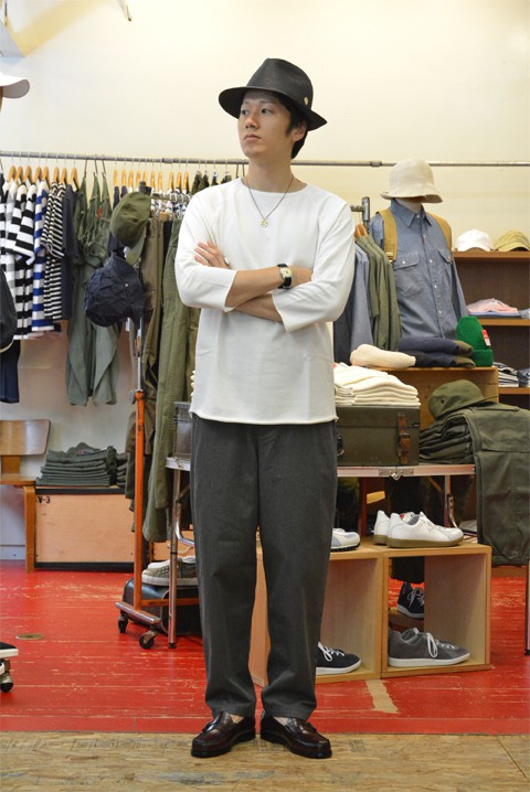 今の気分は少しルーズなバランス。パンツも太いもので全体を程よくルーズにしてみました。