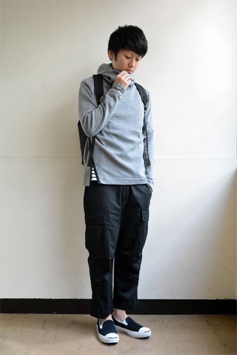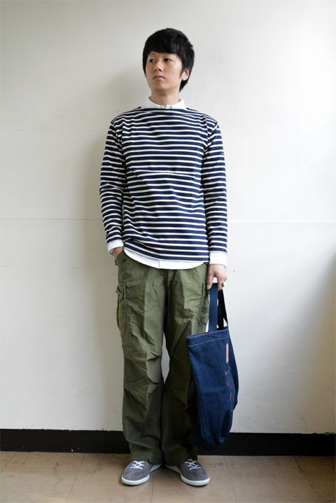 ザボスタ定番のシャツonセントジェームス。カーゴパンツに合わせたミリタリーミックスもスウェードスニーカーでまとめるのが今年っぽいのでおすすめです。
