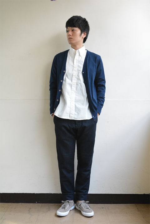 インディゴ染めのスウェット素材のGジャンに、ルーズパンツなシルエットの綿ポリのワークパンツをブラックカラーで締める。そんなリラックスしたZABOU流2016AWアメカジスタイル。