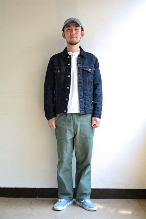 ガンホーなどのベイカーパンツと合わせてアメカジスタイル。ではありながらもシルエットと生地感で一味違った感じに見せてくれます。