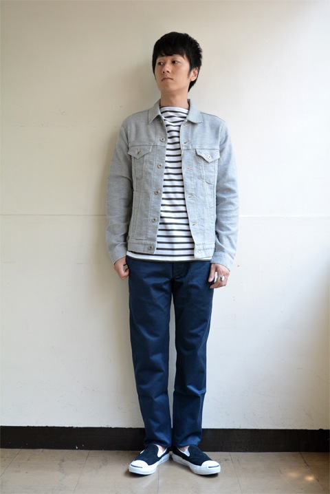 パッと見はスウェットのような生地。ですが実はデニム地でございます。伸縮性を持たせながらも、生地の伸びが起こりにくいとても考えられた生地。先にご紹介済みのコチラのパンツもそんな生地でしたよね。