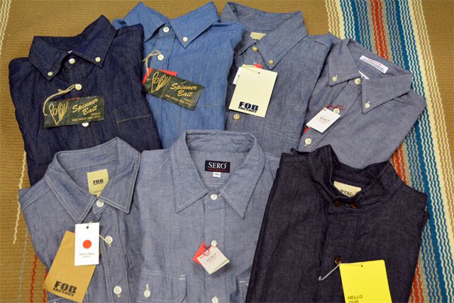 シャンブレーシャツやデニムシャツ達。