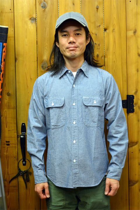1940年代のワークシャツのディティールをベースに、播州織のシャンブレー生地を使ったMADE IN JAPAN。敢えてタイトなバランスにすることで、アタリが出やすいなど着込んだ時の経年変化をより体感して頂きやすいものになっています。コットン100%はしっかりとした着心地です。