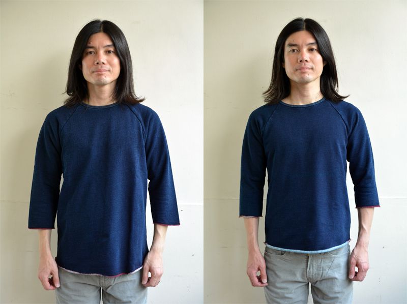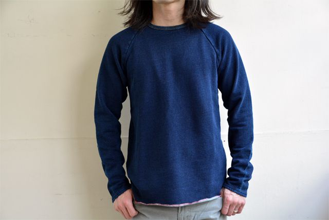 SPINNER BAIT(スピナーベイト)ブランドより入荷したのが「インディゴ裏毛ラグランクルー」と「インディゴ裏毛ラグランクルー7分袖」。