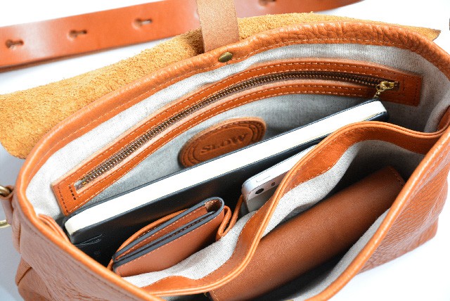 日本で最高の技術をもつとされる栃木レザー社のフルベジタブルタンニングレザー(ヌメ革)を使用。それはスロウが特注したものでコシがありながらもソフトな質感が特徴的です。また、革本来の風合いに経年変化が楽しみなところでもあります。