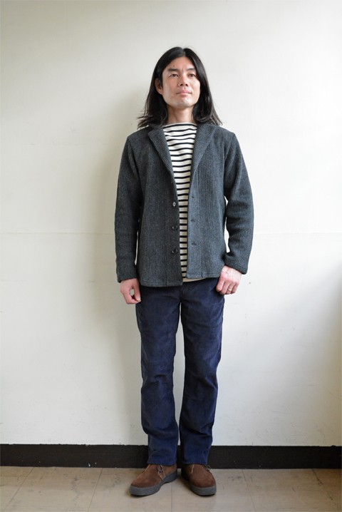 もうひとつはコーデュロイジーンズとでリラックススタイル。カットソーの上からでシンプルな大人カジュアルに。