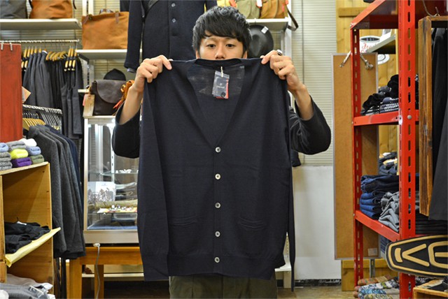 CandidiumのVネックカーディガン。品の良さが漂うハイゲージのニットは肌当りも滑らか。