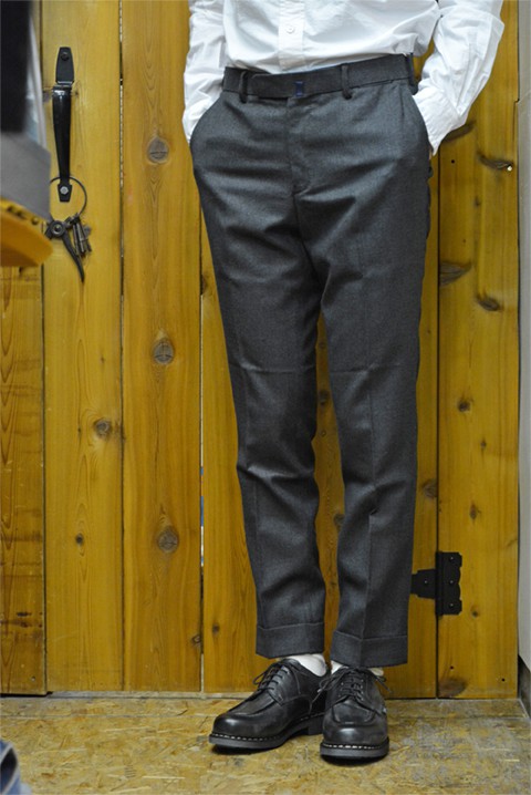 ジャケットは既にネットショップにアップ済みでございます。柔らかな素材感のウールフランネル。それぞれ単体使いはもちろんのこと、組み合わせて着て頂くのもオススメです。