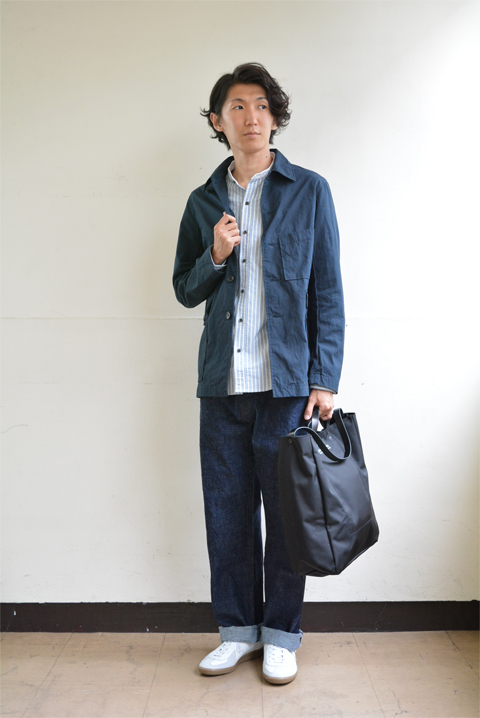 シュッとしたシルエットなので、細いパンツにはもちろん合います。