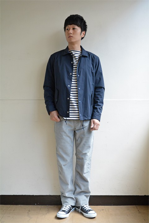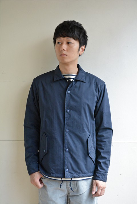 コーチジャケットというと大体が大き目のサイズバランス。ある意味それがカッコいい所でもあるのですが、アクロスのそれはすっきりとしたサイズバランス。