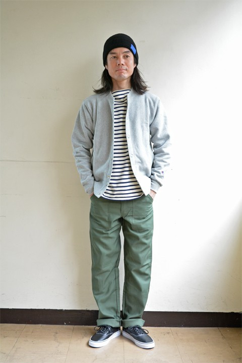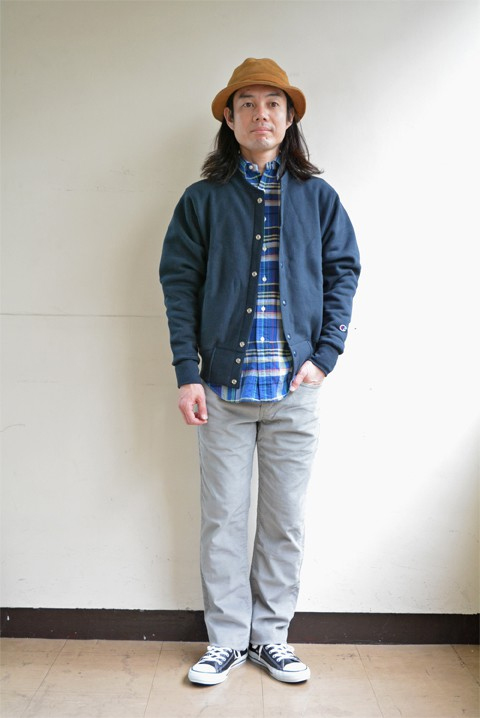 ZABOU styleは、アメカジやトラッドをベースにしています。創業当時は私田口も学生でよく通っていたZABOU。もちろんアメカジが好きです。チャンピオンのリバースウィーブが所狭しとあった印象が強くあり、今でもその風景を店頭でよく思い出します。