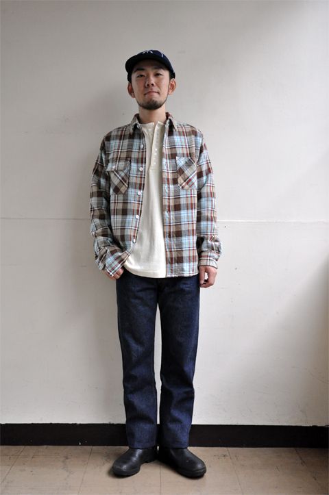 アメカジの代表アイテム、ヘビーフランネルシャツは秋こそ良く似合う。シャツジャケの様に羽織るのが気分。もちろんルーズシルエットのリゾルト711に合わせるのがおすすめです。