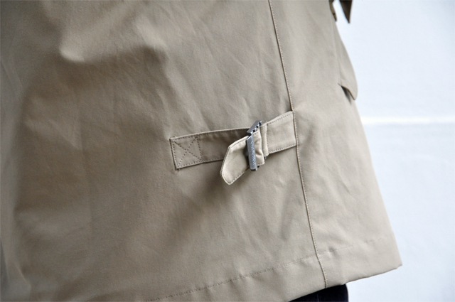 表地は綿50%、ポリエステル50%で撥水処理がなされた機能的な生地。綿100のものに比べて生地に光沢、ハリがございます。