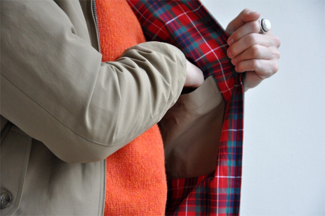 裏地は伝統のタータンチェック。クールマックスを使用しており通気性と速乾性に優れます。変わらぬイギリス製でクラシック、ローテクなようでしっかり機能的なジャケットなのです。