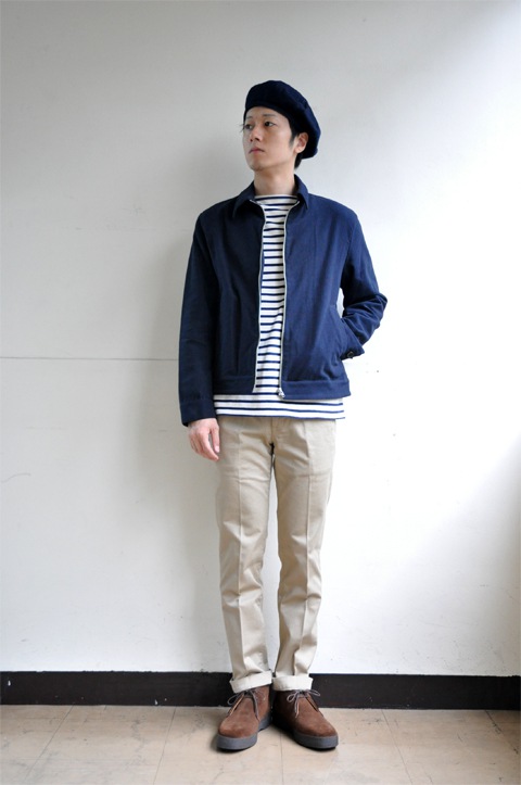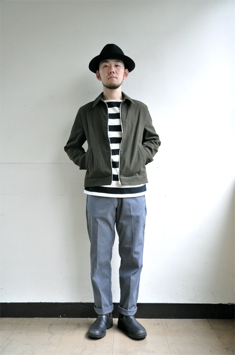 気分でもあるブルゾンタイプ。僕もブルゾンアウター好きです。すっきりとした身幅とやや短めの着丈で、ブルゾンにありがちな野暮ったさを感じさせないサイズバランス。シャツと合すよりもカットソーとの方が相性◎です。