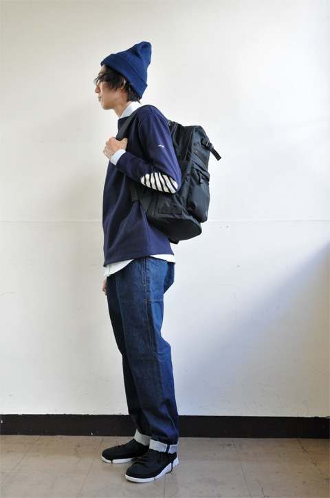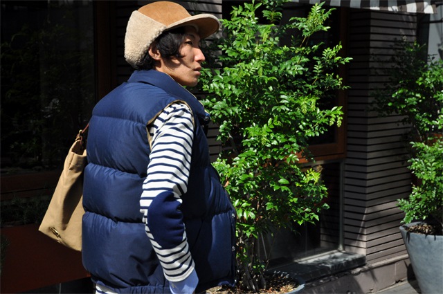 所々にベージュを入れて季節感を出しつつ、ウエッソンのボーダーとエルボーパッチのマリンのお色と相性の良いオリーブのパンツをセレクト。今回はM-65ですが、ダウンベストと合わせた時のダボッと感が好みです。