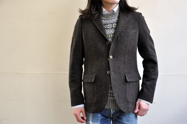 また、同スタイルによるヘリンボーンのツイード生地もご用意させて頂きました。イギリスの紡毛素材でクラシックな雰囲気がたまりません。よく穿き込んだジーンズでカジュアルに合わせたくなるのは私だけでは無い筈です!