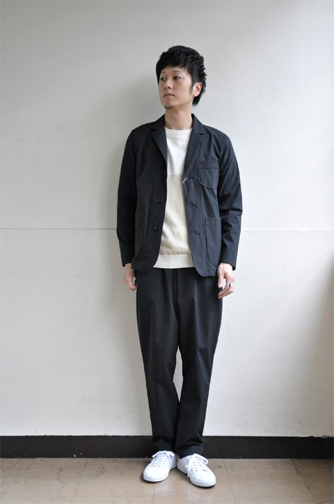 新しい事へ挑戦する姿勢は忘れたくないとおっしゃる杵築氏。 毎年テーマを掲げて作られているのですが、どういった要素でそれを取り入れているのか、そんな話を聞いてみました。 今回のテーマ“VARIANT”は“異様な、異質な”という意味でございます。 今回いつもと違うところは、その素材感。 綿や麻など天然素材を用いることが多かったこれまでに対し、今回はそこに機能素材や化繊をプラスし、軽さがあってスポーティであったり、リラックスした印象を持たせるようにしています。 例えば、パンツなどはそういった要素がよく出ているなと思いました。 black2_compressed black6_compressedweac.(ウィーク)'17春夏 RELAX WIDE PANTS ブラック  ¥14,904- シャツなどのトップスのイメージが強い、というかほとんどそうなのですが、パンツのコレクションも少しづつ増えてきました。 このパンツはウエストがゴムになったイージーパンツ。 ウエストがゴムのパンツは自分で穿くのに抵抗があったと杵築氏は言っていましたが、 ウエストが楽でも、シルエットが綺麗であったり、生地の雰囲気が良ければ気にならない。むしろ一度穿くと楽でいいと。 このパンツはワイドスラックスのような太くても品のあるシルエットに、質の良いウール地を思わせるポリエステル×レーヨンの混紡素材。 軽やかで穿き心地も楽チン。男女問わず使えるウィーク新作注目株の一つです。 black2_compressed black5_compressedweac.(ウィーク)'17春夏 MOVER PANTS ブラック  ¥15,120- こちらも同じくイージーパンツ。先程の物よりも生地にハリがございます。 撥水機能を持たせた高機能ストレッチ素材“MOVE FIT”を使用した機能性の高い仕上がり。シルエットはテーパードが効いており、ウエスト部分のサイズ感とのギャップも面白いポイントです。 こちらは同じ生地でジャケットもあってセットアップで着るのもカッコイイですね。 black7_compressed もちろん、お得意のシャツでも一捻り効いたものたちがたくさんございます。 例えばこんなシャツも。 blue7_compressedweac.(ウィーク)'17春夏 SHINE ホワイト  ¥15,984- 脇部分に接触冷感・抗菌・消臭をもつ高機能素材を使用したシャツ。 実用的な意味があるのかは分からない(笑)と冗談まじりでしたが、ファッションとしては機能だけではなくデザイン性がある方が面白いですよね。 他にもまだまだございます。 よければこちらもご覧下さいませ。 ⇒『weac.(ウィーク)17春夏『VARIANT』受注会 』  作り手の意見を聞くとさらに興味が湧いてきます。 9日間の日程で開催予定の今回の受注会ですが、11月3日(木)と11月5日(土)と6日(日)は杵築氏も会場に来られる予定です。 この機会に是非ウィークの服をご覧頂ければと考えております。 皆様のご来店、スタッフ一同心よりお待ちしております。 weac2017ss2_mini『weac.(ウィーク)17春夏“VARIANT”受注会』 期間:10月29日(土)~11月06日(日) 時間:12時~20時 場所:ZABOU 2F&ZABOU WEB SHOP ☆実店舗へのご案内、お店までへの行き方を地図や動画でご紹介! ⇒ZABOUのお店 ☆通販で購入、商品詳細など詳しく見る! ⇒ZABOU WEB SHOP(ウェブショップ) 通販サイト ●新着商品・再入荷商品などのお知らせ、その他情報満載! ⇒【ZABOU facebook(フェイスブック)】 ●おすすめ商品やザボスタが見たい! ⇒【ZABOU Instagram(インスタグラム)】 ●洋服の合わせ方、色の使い方などZABOU STYLEをご紹介! ⇒【ZABOU WEAR(ウェアー)】