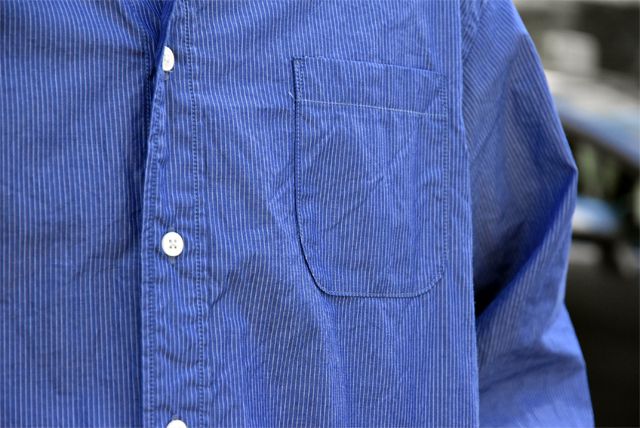 おすすめの「BIG MAN ブルーストライプ」は、エジプトで採取される最高品質の『GIZA88綿』と言う100番双糸を贅沢に使用しています。この素材を気分の「遊び」のデザインへ消化しているのがグッとくる。私の場合は、逆にこの素材だからこそこのデザインに安心感があるんです。