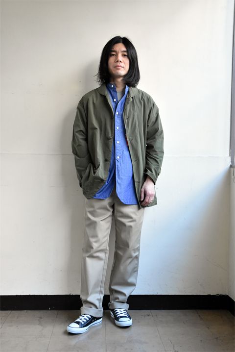 同じように大きめのデザインなので「BIG MAN ブルーストライプ」とのレイヤード(重ね着)には好都合。ナイロンコットン素材で、軽くて撥水加工を施した生地は春アウターにピッタリ!ヘビロテ確実でしょう。加茂くんがおすすめのアレと同じす。加茂着用の過去ザボブロチェックして貰ったら一目瞭然。案外と柔らかな質感で良い雰囲気をご確認頂けます。これは、バランス良くまとまりますよね~。