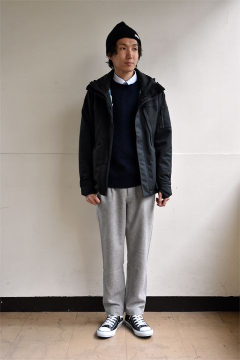スノーボードのウェアを作る大阪のブランド。雨風はもちろん透湿性も高く、さらにはストレッチする生地を採用。オールブラックで街に馴染むカラーにして裏地のみ遊びを取り入れたスペシャルモデル。これぞ最強アウター。もちろんセーターにウールのパンツと言ったオーセンティックなスタイルにも◎