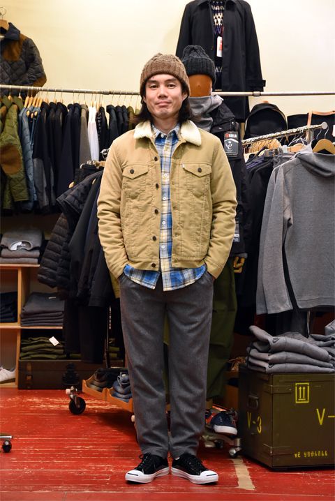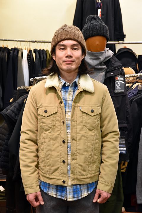levisboagjac5_compressed●帽子 SUBLiME(サブライム)  ¥3,456- ●Gジャン LEVI'S(リーバイス)  サイズ:S  ¥14,040- ●シャツ FIVE BROTHER(ファイブブラザー)  サイズ:S  ¥11,340- ●パンツ Vincent et Mireille(ヴァンソン エ ミレイユ)  サイズ:38  定価¥15,660-の30%OFF⇒¥10,962- ●スニーカー CONVERSE(コンバース)  サイズ:8  ¥14,040- 身長171cm 体重58kg 足約26.5cm コーデュロイバージョンもございます。ネルシャツに合わせたアメカジもウールのパンツでちょいきれい目に着たいです。 levisboagjac6_compressedLEVI'S(リーバイス) ボアGジャン  カラー:ベージュ  ¥14,040-