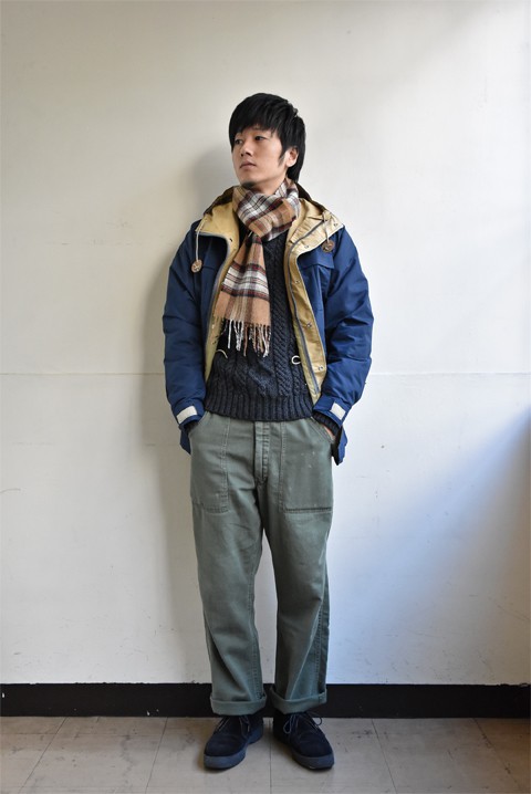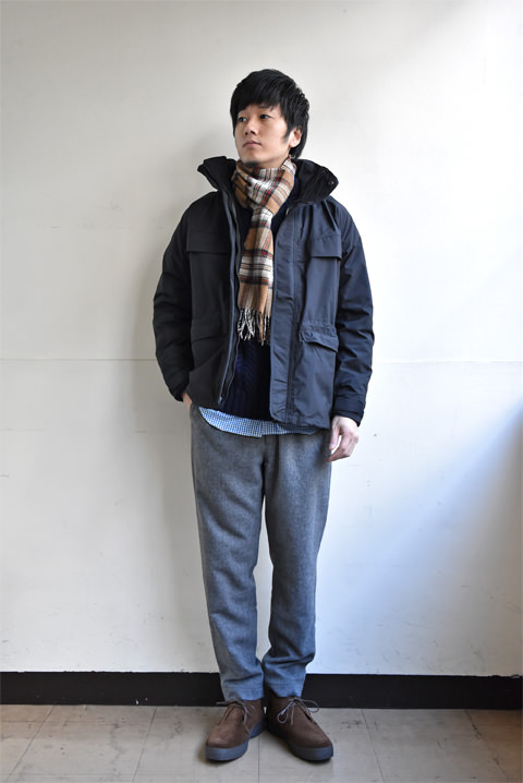 ややザックリとしたサイズバランスですので、上に合わせるアウターは、同じくややゆったりとしたシエラデザインズやキーラなどのマウンテンパーカーがおすすめです。