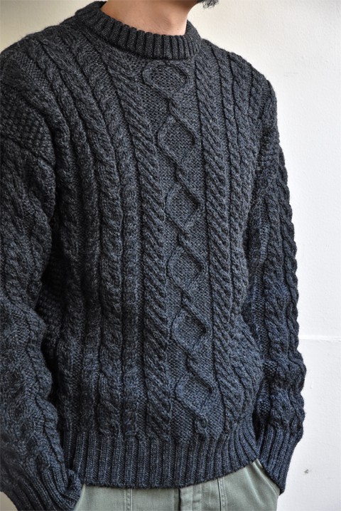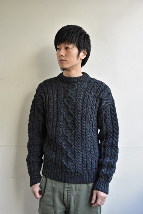 ●GUERNSEY WOOLLENS(ガンジーウーレンズ) ARAN PATTERN CREW NECK SWEATER ダークグレー ¥23,760-