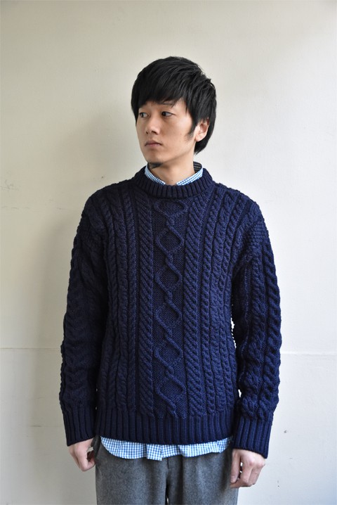 ●GUERNSEY WOOLLENS(ガンジーウーレンズ) ARAN PATTERN CREW NECK SWEATER ネイビー ¥23,760-