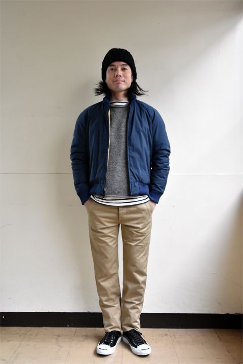 中綿ジャケットの魅力はすっきりしたシルエットでありながら暖かく越冬出来る事。例えば、リゾルトなどの細めのジーンズにピタリと似合うきれい目カジュアルを体現して頂ける。ビーバーオブボルトンのものは、コーデュロイの襟やスウェードのパッチは肩と肘など、程良い土臭さが魅力でもあります。