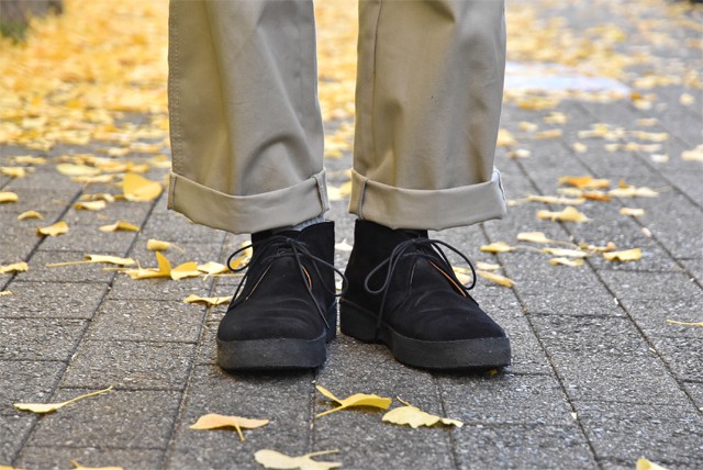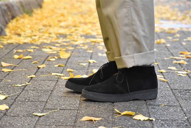 革靴の中でもこれが今年はお気に入りで登場回数も多め。確か初めて買った革靴も、黒のスウェードのチャッカブーツ(なんだったかな・・・)。