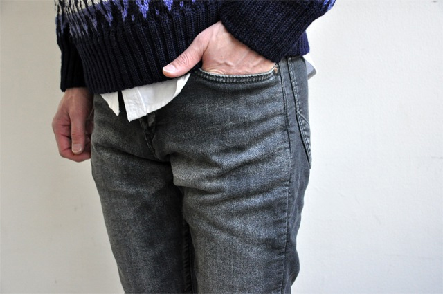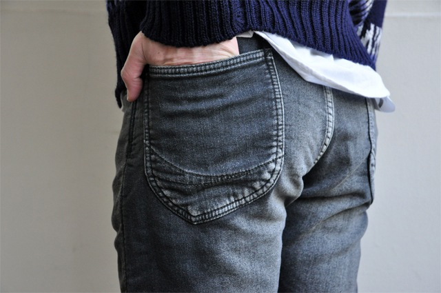 「やめられないとまらない」と言えば、「かっぱえびせん」ですが、 ストレッチ性があるなどノンストレスな服もまた同じです。 本日ご紹介させて頂きますkafika(カフィカ)のワンマイルジーンズはそんな皆様におすすめのパンツです。 kafika1 最大の特徴は、この素材。一般的なスウェット素材(編み物)ではなく布帛素材(織り物)を二重織という技法で生地の表と裏を異なった組織で織り上げスウェットの様にしたもの。14ozのデニム並みの生地感は色落ちを楽しめるジーンズライクな仕上がりであり、伸縮があるノンストレスなものとなりました。 見た目は普通のデニムの様ですが、穿いてみるとやっぱりラクチン。ウエスト部分にはベルトループはもちろんありますが、ドローコードも採用してますのでリラックス感がある。腰周りからソフトなテーパードでシルエットもいい感じです。