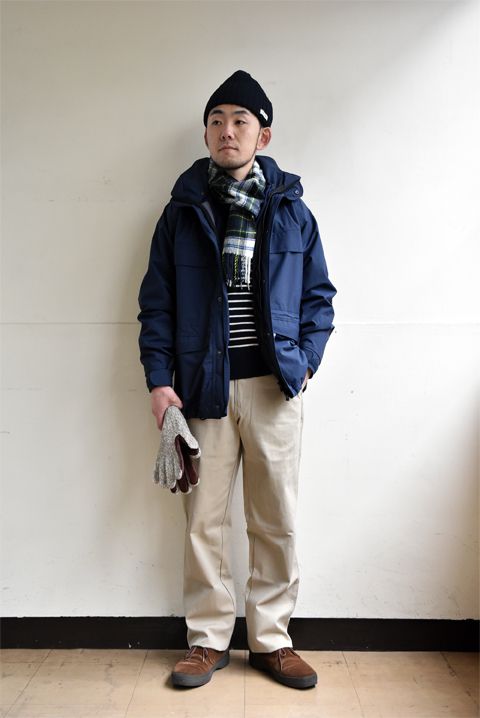 ルーズシルエットのスタイルは、オーセンティックなガンジーセーターや短め丈のパンツ、スウェードのシューズなどで上品にまとめるのが気分。さらにシエラデザインズのシュッとしたロング丈のコートを合わせれば鬼に金棒です。60/40とセーターは相性抜群なのでおすすめのコンビネーションです。