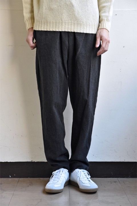 こちらウエストはイージー仕様でゆとりを設けており、裾に向かってゆるくテーパードがかかってシルエットが綺麗。