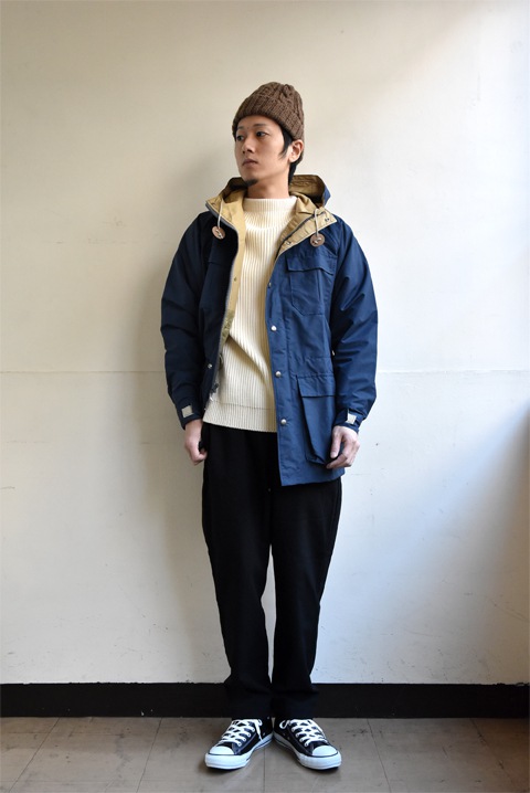 ミリタリーライクなウール混の生地はデッドストックのもの。