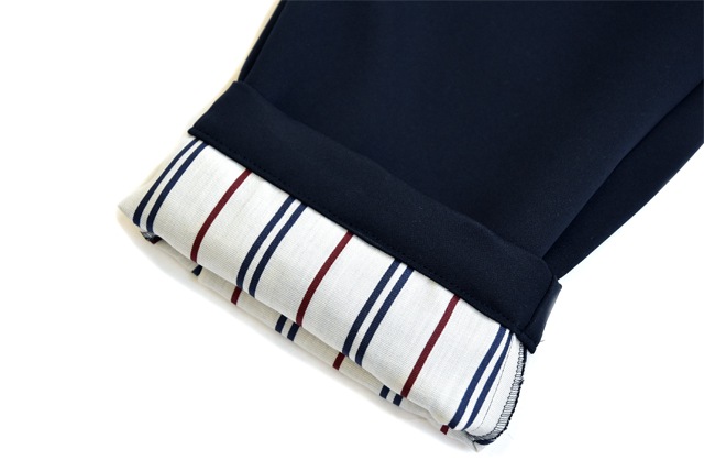 スポーティーさがあり同じ形でもまた違った見え方に。裏地はストライプになっていて見えない所にもこだわりがございます。