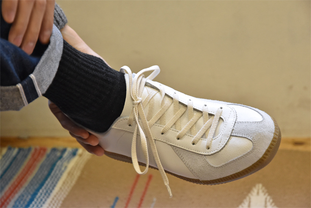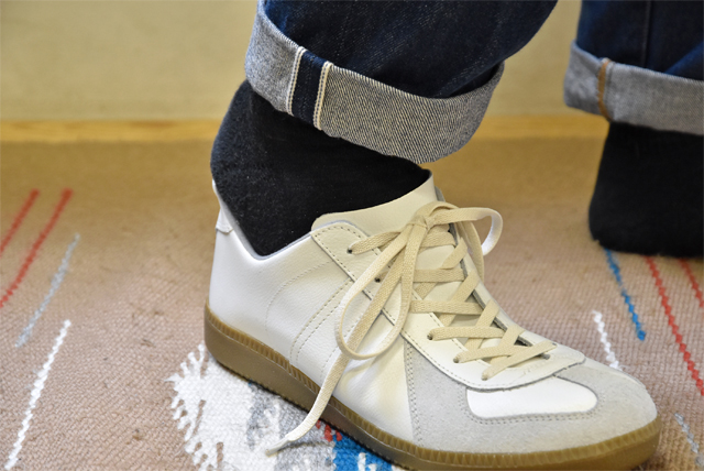 ですがこちらはコットン100で色も“キナリ”。風合いも良く、さらに履き込むことでエイジングも楽しめる。細かいところですが結構雰囲気は変わります。