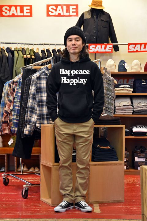 プレイデザインは、冬の最強アウター「ラブジャケ」などでお馴染。スノーボードウェア等を手掛け、アウトドアウェアやスポーツウェアがそうであるようにそれを普段着としても楽しもうと提案。それに共感した。私田口の場合はラブジャケが出来て約10年ずっと愛用し続けてます。近年は別注させて頂く事でより街着として快適なモノになるようご提案させて頂いてます。