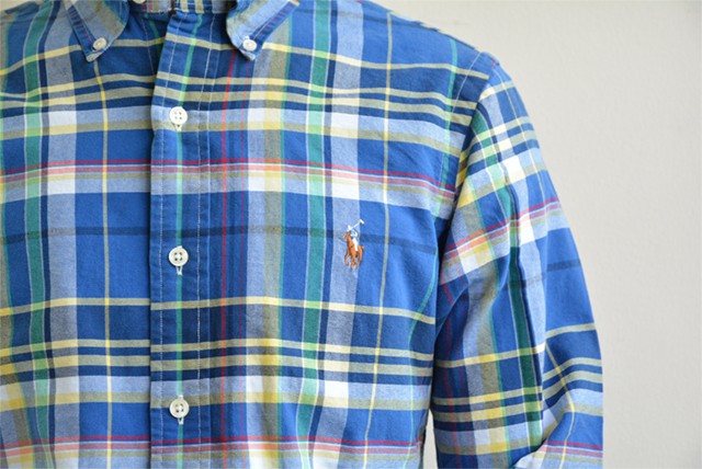 鮮やかなカラーのチェック柄がセーター等の重ね着にアクセントとなってくれます。また、馴染み良く柔らかな風合いのコットンはさすがポロラルフローレンといった生地感です。アメリカ買い付けのレアアイテムってのも嬉しいポイント◎
