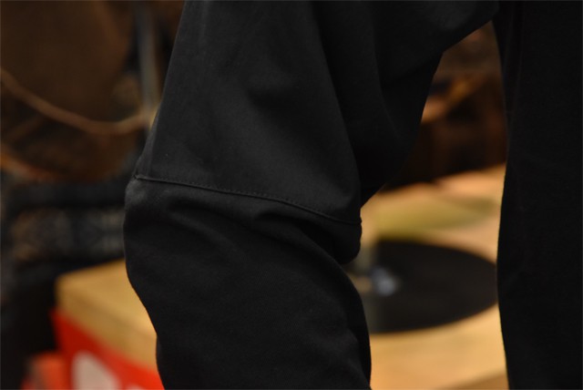 前腕部はジャージ素材。伸縮性に優れ、柔らかくあったかい。少し細身でスッキリとしたバランスです。
