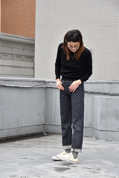 ワンウォッシュされているとはいえ、まだまだ硬さの残るデニムの試着となりますと特に。。。